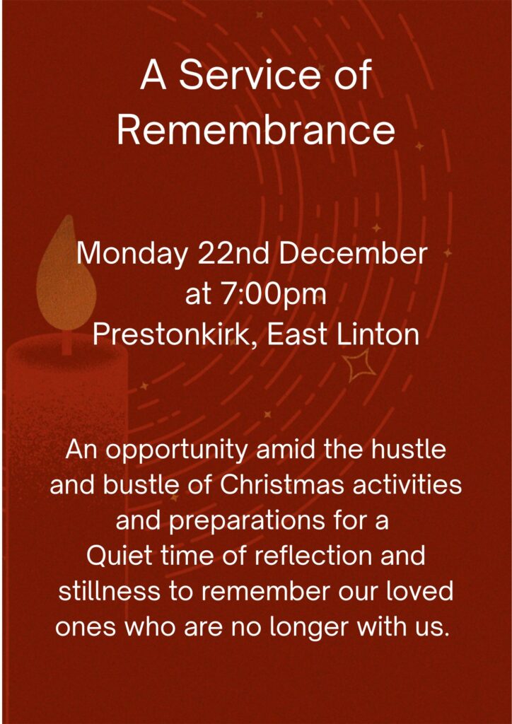 Sunday 14th December at 9:30 am at Stenton and 11:00 am at Prestonkirk