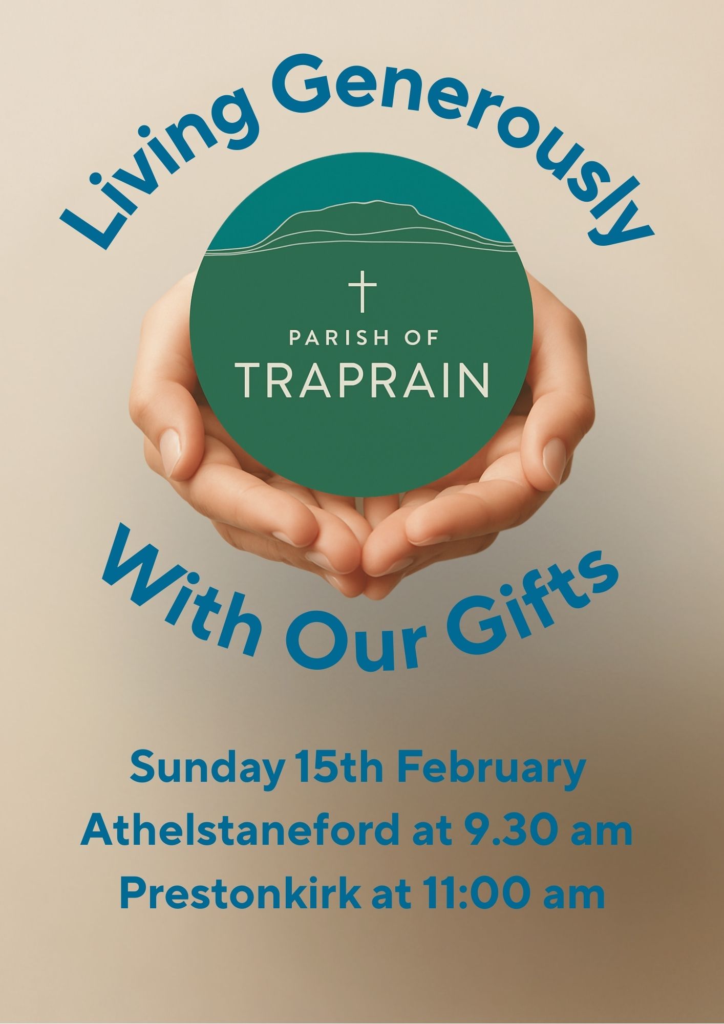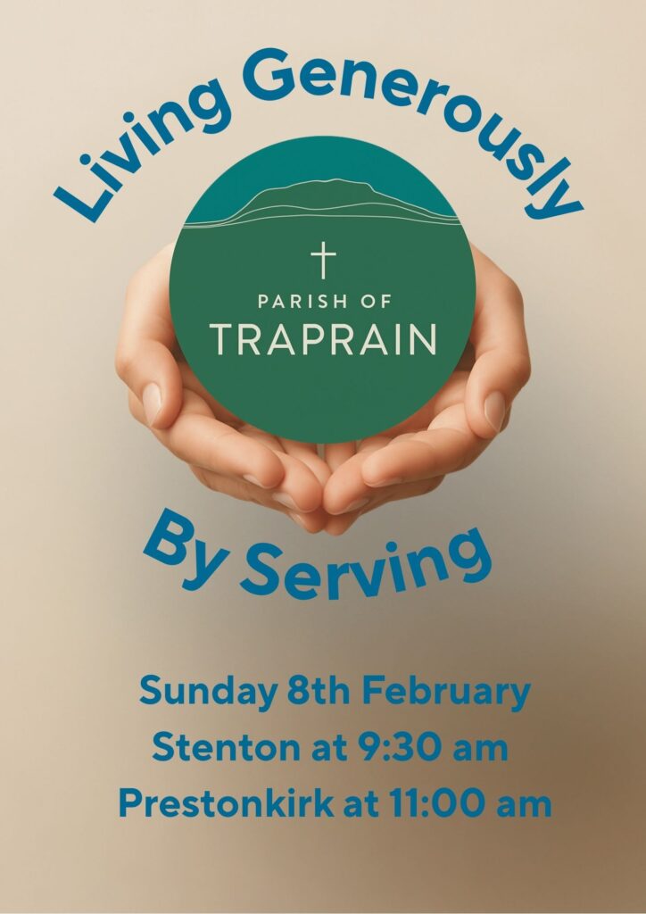 On the first and third Sundays of the month there is a service at Athelstaneford. On the second and fourth Sundays there is a service at Stenton. All these services are at 9.30am.