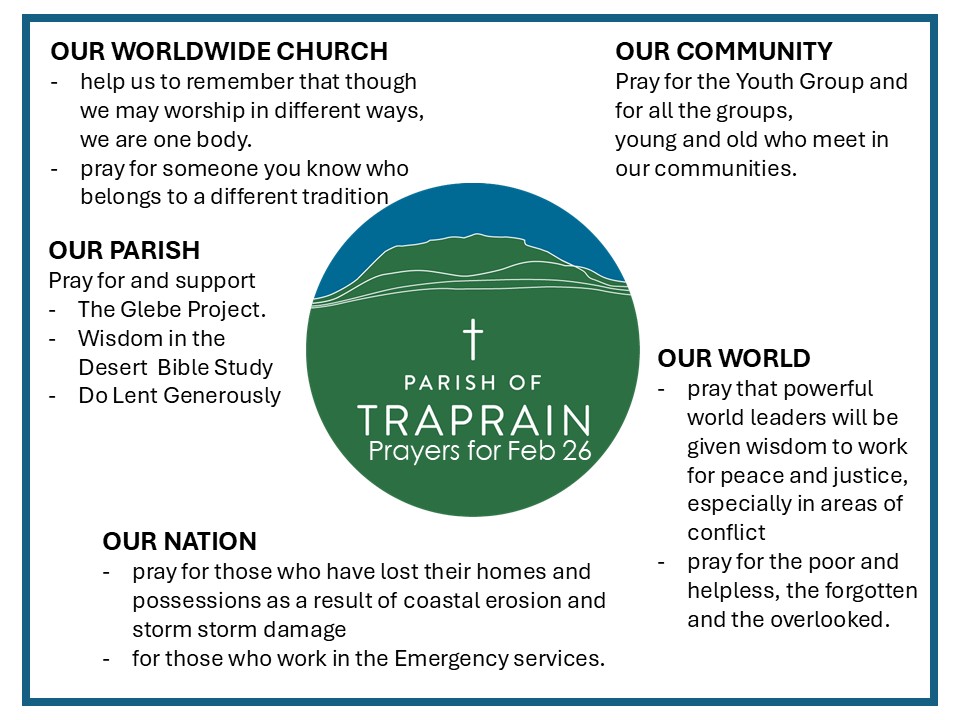Our latest monthly update, detailing all upcoming services and activities, is available here. You can subscribe to our monthly newsletter by subscribing here. or by contacting admin@parishoftraprain.org.uk